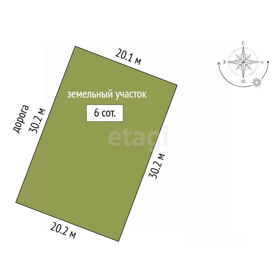 - Площадь 6 соток;