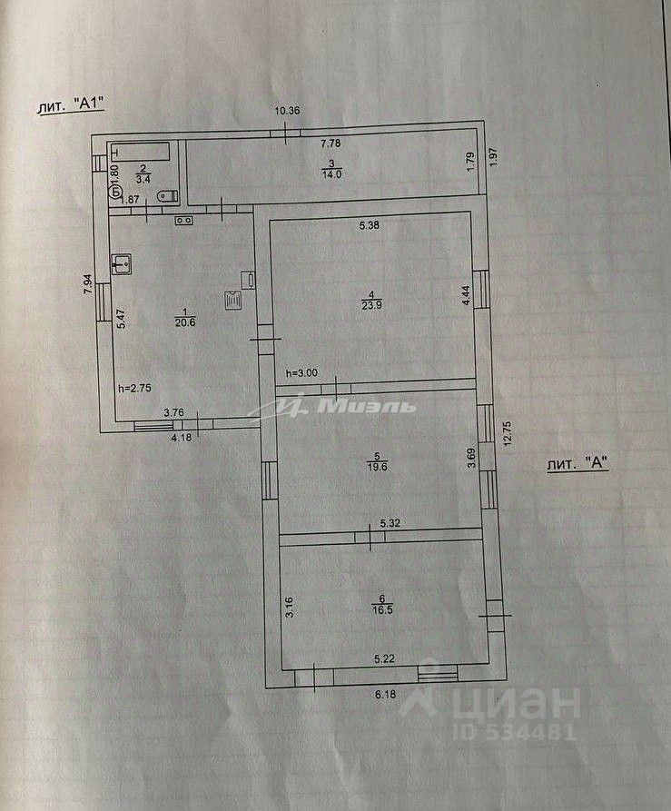 Комната 1: 23,9 кв.м