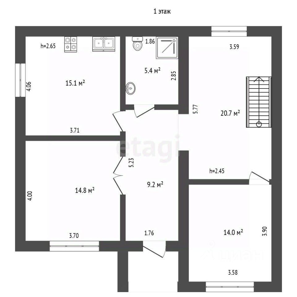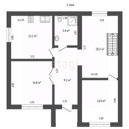 В доме 4 спальни: 14.8 м2, 14 м2, 19.2 м2, 17.4 м2.
