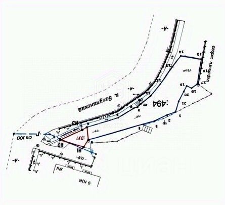 Земельный участок вытянутой формы с разрешением на индивидуальное жилищное строительство (ИЖС).
