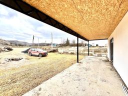 Дом с колоннами, на прочном фундаменте (лента + плита), с сейсмопоясом, армирован, кровля — металлочерепица, потолки подшиты OSB плитами, утеплен по кровле и фасаду; по периметру огражден еврозабором + калитка + откатные ворота. С просторной крытой террасы дома открываются роскошные виды на холмы. Участок ровный, сухой, правильной формы. Вокруг живут соседи.