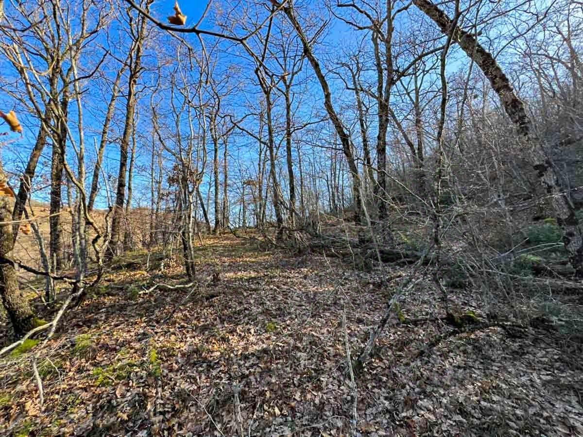 Участок имеет уклон, с видом на лес.