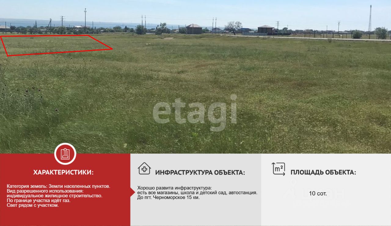 Продам видовой земельный участок в селе Межводное общей площадью 10 соток. Участок правильной прямоугольной формы. По периметру не огорожен.