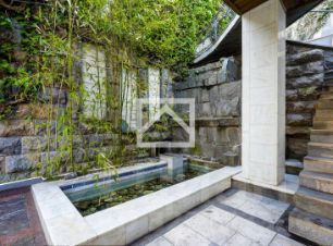 два бассейна: декоративный с эффектным водопадом и купальный размером 36 м, полностью облицованный мрамором,