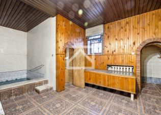1 этаж: гостиная, две комнаты, кухня, санузел, сауна с бассейном, два камина (один из нефрита), тёплые мраморные полы.