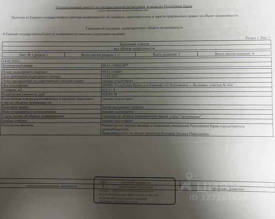 Кадастровый номер участка - 90:11: 130601:927