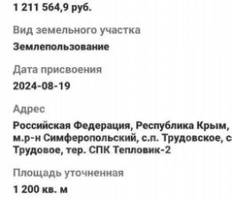Продаётся земельный участок, огороженный, с хорошими подъездными путями, в Спк "Тепловик-2. Симферопольский район, активно развивающейся массив. Общая площадь: 12 соток. Имеются плодовые деревья, резервуар для воды, хоз постройка, 2 бака по 6 кубов. Свет столбы по границе. Участок подходит под строительство жилого дома, ввода в эксплуатацию, прописка. До Симферополя 7 км, шикарная дорога, ходит рейсовый автобус. Реальному покупателю небольшой торг, быстрый выход в сделку, наичестейшие документы, выделение из Мизо!
