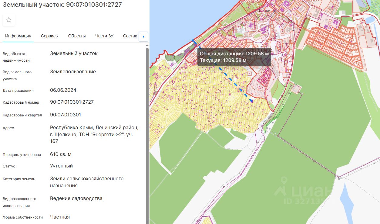 Земельный участок 610 кв.м. в 50 метрах от границы населенного пункта гор. Щелкино, Крым, к морю по прямой 1200 метров.