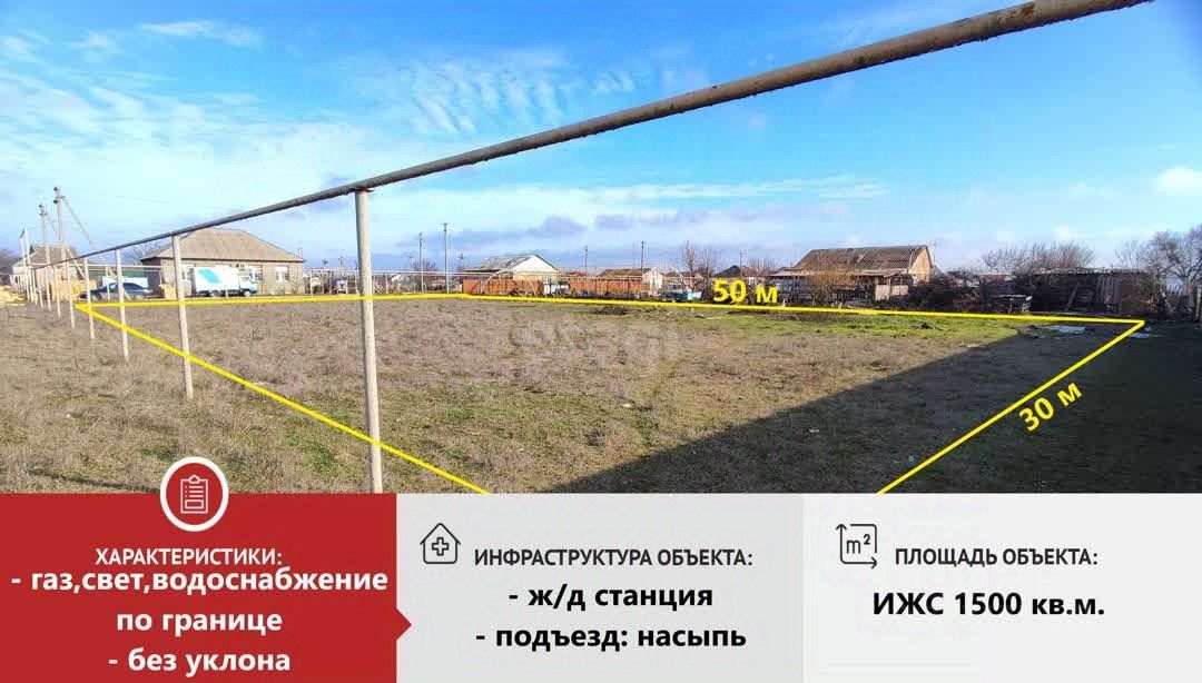Полная инженерная готовность: по границе уже подведены магистральные сети электричества, газа и центрального водоснабжения. Дорога из насыпи, что обеспечивает доступ в любое время года. Рядом автобусная остановка, 45 км до Симферополя, 19 км до Евпатории и 24 км до моря.