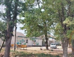 Школа в большом пгт. Черноморское. Ходит школьный автобус.