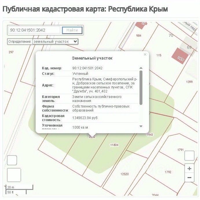 СНТ Дружба. Кадастровый номер 90:12:041501:2042. Участок без строений, на возвышении. Деревья (уже есть тень) и кустарник. Коммуникации: Свет, Газ - рядом. До Ялтинской трассы 2 км. 10 мин на автомобиле до Симферополя. Земли сельскохозяйственного назначения с возможностью перевода в ИЖС.