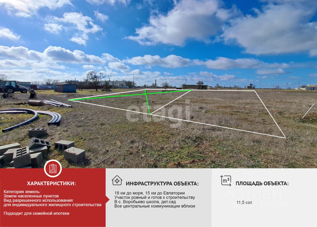 Продаётся участок ИЖС 11.5 соток в живописном селе Воробьево (Сакский район, 15 км от Евпатории)