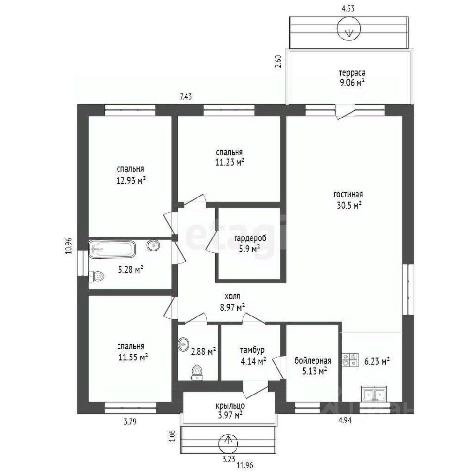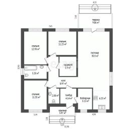 Дом площадью 104 кв. м с тремя комнатами, расположенный на одном этаже, предлагает комфортное пространство для жизни. Планировка включает кухню 6,23 кв. м, тамбур 4,14 кв.м., три спальни по 11,55 кв.м., 12.93 кв. м. и 11,23 кв.м., гостиную 30,5 кв. м, ванная 5,28 кв.м., с/у 2,88 кв. м, тамбур 4,14 кв. м, гардероб 5,9 кв.м. холл 8,97 кв. м. Строительство занимает от трех месяцев, гарантия на дом — 5 лет. Стоимость начинается от 50 000 руб. за кв. м. Конструкция дома обеспечивает надежность и долговечность. Фундамент — железобетонный ленточный, каркас монолитный сейсмоустойчивый. Стены и внутренние перегородки выполнены из газоблока, перемычки над проемами усилены. Кровля с деревянными балками камерной сушки утеплена каменной ватой 150 мм и защищена гидроизоляцией. Окна металлопластиковые с двухкамерными стеклопакетами и четырехкамерным профилем, входная дверь металлическая. В базовой комплектации "Коробка" предусмотрена вентиляционная система. Дополнительно можно заказать утепление фасада пенополистиролом 50 мм с отделкой декоративной штукатуркой, установку водостока, отмостки, септика с подводом коммуникаций в дом и крыльца. В комплектации "Теплый контур" эти работы уже включены. Для завершения отделки доступна опция "Предчистовая": теплый пол, чистовая стяжка, штукатурка стен, монтаж системы отопления (котел и радиаторы), разводка электричества и водоснабжения. Дом сочетает практичность, качественные материалы и продуманную конструкцию, что делает его выгодным решением для постоянного проживания или сезонного использования.Стоимость участка не входит в стоимость дома.Расчет по строительству: ипотека, семейная ипотека, материнский капитал, наличные. Высокий шанс одобрения ипотеки. Звоните, с удовольствием ответим на ваши вопросы! Код пользователя: 168937 Номер в базе: 9798698