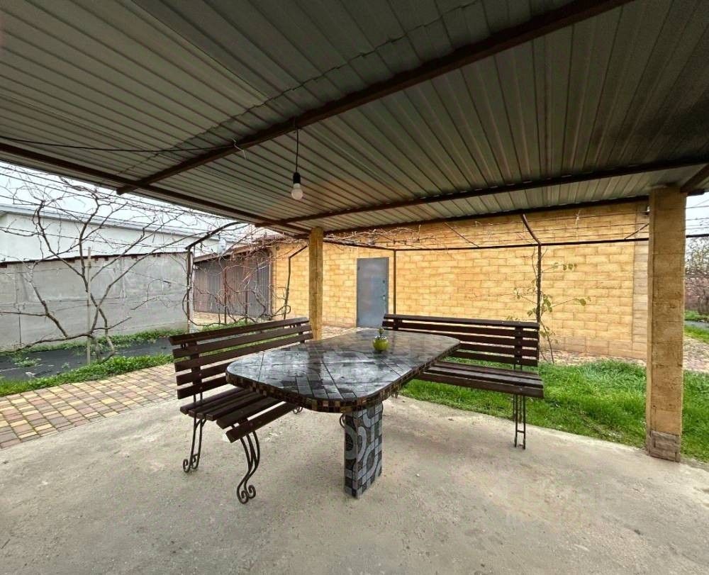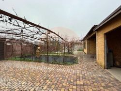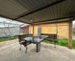 На участке расположена беседка, под крышей. Много плодовых деревьев, несколько видов винограда.