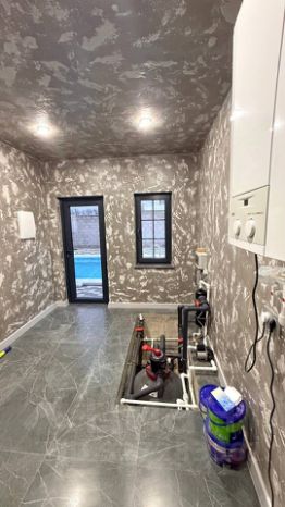 В тех.помещение установлен газовый котел BAXI для обогрева летнего домика и бассейна.