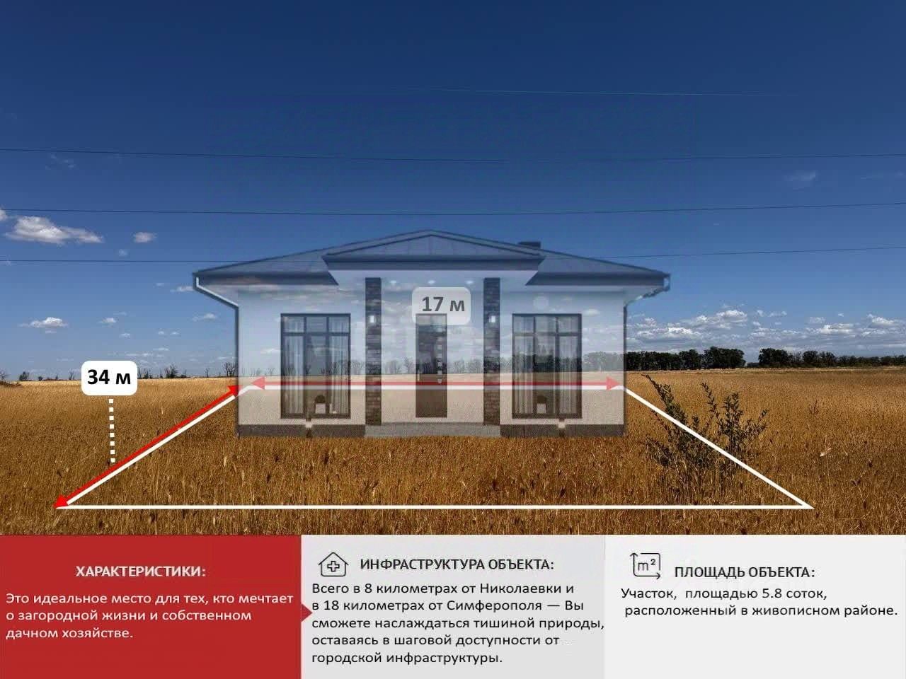 Это идеальное место для тех, кто мечтает о загородной жизни и собственном дачном хозяйстве. Участок имеет статус сельхозназначения, что позволяет Вам не только вести дачное хозяйство, но и строить жилой дом, создавая уютное пространство для жизни и отдыха. Всего в 8 километрах от Николаевки и в 18 километрах от Симферополя — Вы сможете наслаждаться тишиной природы, оставаясь в шаговой доступности от городской инфраструктуры. Дорога к участку удобная — Вы легко доберетесь как на автомобиле, так и на общественном транспорте. Рядом с участком проходят электрические сети, что обеспечит Вас необходимыми ресурсами. Газовая труба находится всего в 300 метрах, а для водоснабжения Вам потребуется пробурить скважину. В самом населенном пункте есть все необходимое для комфортной и полноценной жизни круглый год: магазины, школы, медицинские учреждения и многое другое.