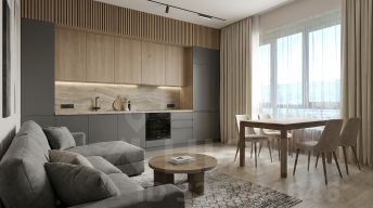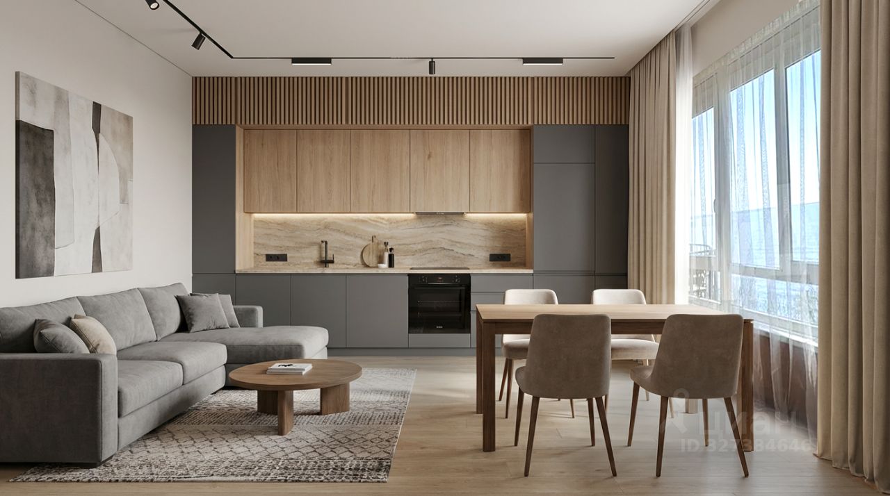 Две светлые комнаты с качественной отделкой. Интерьер выполнен в тёплых тонах, создаёт атмосферу домашнего уюта. Установлена современная сантехника, хорошая мебель. В доме чисто, тепло и аккуратно — можно заезжать и жить без лишних хлопот.