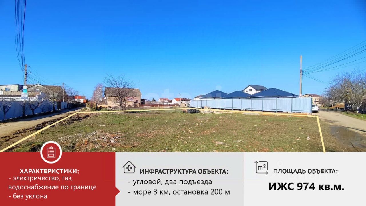 Полная инженерная готовность: по границе уже подведены магистральные сети электричества, газа и центрального водоснабжения. Подъездная дорога с асфальтовым покрытием обеспечивает удобный доступ в любое время года. Рядом автобусная остановка, 50 км до Симферополя, 20 до Евпатории и 3,5 до моря. Маршрутный транспорт ходит каждые 15 минут