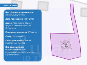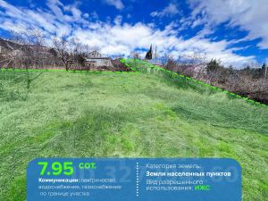 Площадь: 7,95 сотка. Назначение земельного участка: индивидуальное жилищное строительство (ИЖС).
