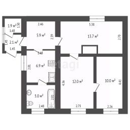 Имеются хоз. постройки, погреб, гараж, навес машины, сад, огород. Право собственности РФ на дом, строения и земельный участок 13,5 сотки. В селе 5 магазинов школа, детский сад, ФАП, детские площадки всё в шаговой доступности.