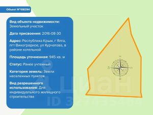 Продается земельный участок в поселке городского типа Виноградное (Ялта) улица Курчатова.