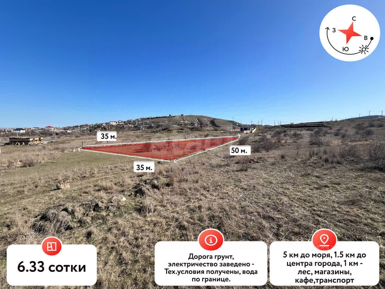 Угловой участок 6.33 сотки с подключенным светом в пгт. Солнечное (Феодосия)
