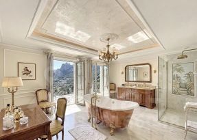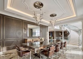 Премиальная отделка с использованием натуральных материалов: мрамор, дерево ценных пород, венецианская штукатурка.