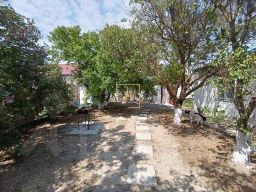 Двор облагорожен, засажен различными кустами и цветами! Растут плодовые деревья, черная смородина, виноград. Во дворе хозблок для хранения садовых инструментов, санузел с душем с горячей водой, летний душ.