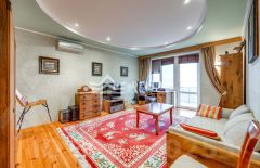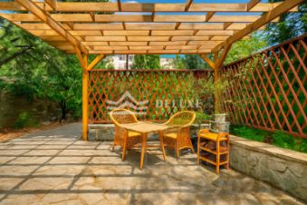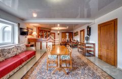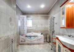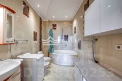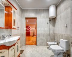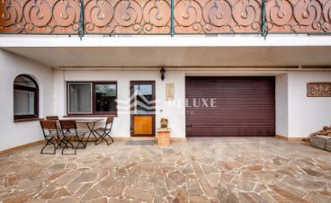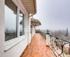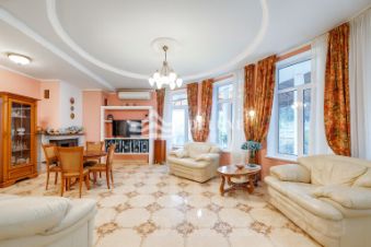 Основной дом трехэтажный, кирпичный, с евро-ремонтом, построен в классическом греческом стиле с колоннами. В доме 6 комнат, пространство рассчитано на постоянное проживание, спокойный семейный ритм и прием гостей без ощущения тесноты и плотной застройки вокруг.