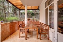 На участке расположен гостевой дом 55 м2 со студийной планировкой и качественной отделкой, есть отдельный домик для гостей или персонала, встроенный гараж с котельной и финская сауна. Территория огорожена и благоустроена, выполнен ландшафтный дизайн, высажены сосны, кипарисы и магнолии, поэтому участок воспринимается не как просто земля у дома, а как уже сложившееся частное пространство.
