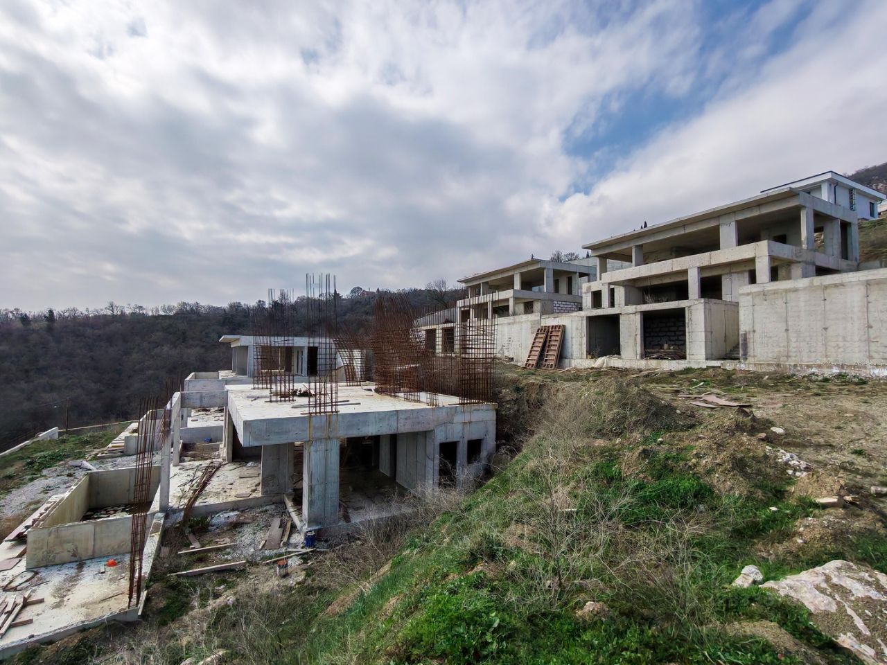 На территории расположены четыре двухэтажных коттеджа, находящихся на этапе строительства. Уже выполнены все работы по заливке железобетонного каркаса. Площадь каждого коттеджа — 250 кв. м.