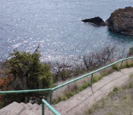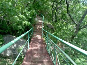 К пляжу ведет лестница, ступени, можно продумать отдельный спуск, или запустить канатную дорогу (есть проект).
