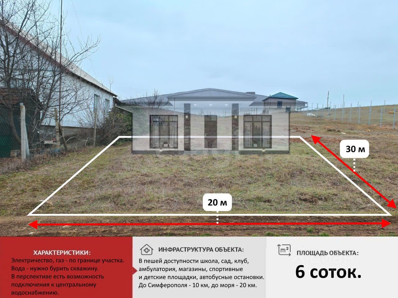 Участок в 20 минутах от моря. Свет и газ по границе