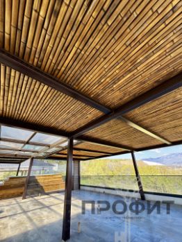 Терраса с навесом из бамбука будто приглашает на долгие вечера с вином и друзьями. Панорамный обзор — горы, море, бескрайнее небо — всё это ваше личное пространство без лишних глаз.