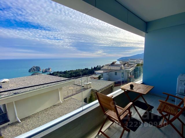 Квартира с дизайнерским ремонтом, выполненном из высококачественных материалов Большие панорамные окна с видом на горы, в спальне боковой вид на море с балкона Полностью укомплектована всем необходимым для жизни Собственная инфраструктура комплекса включает в себя: + лаундж-зону с бассейнами + детскую площадку + паркинг + магазины + кафе и рестораны + охраняемую территорию в квартире: + спальня и кухня-гостиная + балкон + на кухне духовой шкаф, микроволновая печь, холодильник, плита + санузел совмещенный с душем 20 минут до Ялты на машине 8 минут на машине до набережной и ресторанов