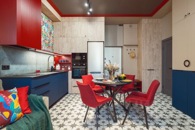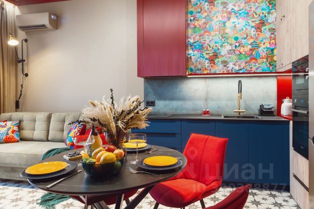 - Стол и пуфы для обеда в апартаментах