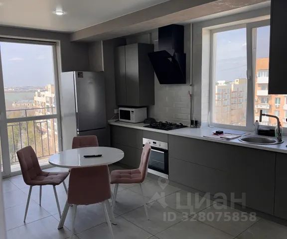- Кухня-гостиная — кухонный гарнитур (варочная панель, духовка, вытяжка, посудомоечная машина, микроволновая печь, 2-х камерный холодильник, электрочайник, тостер, кофеварка, столовые приборы, посуда для приготовления и сервировки). Диван-кровать 2-х спальный, телевизор LG 55", TV-тумба, обеденный стол со стульями, кондиционер.