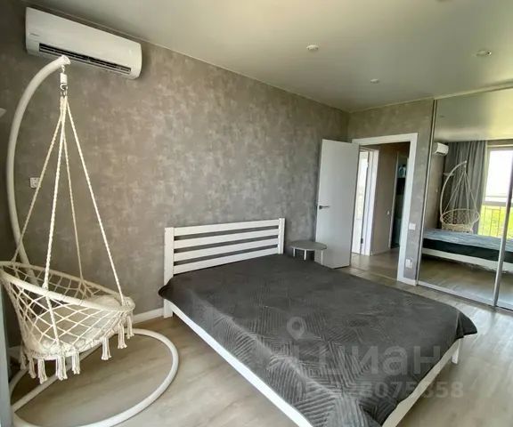 - Спальня 1 — кровать размером 1,6 х 2 м, с высоким и удобным анатомическим матрасом Seaqual от компании Askona, большой и вместительный шкаф, телевизор LG 55", прикроватные тумбочки, кресло, кондиционер.