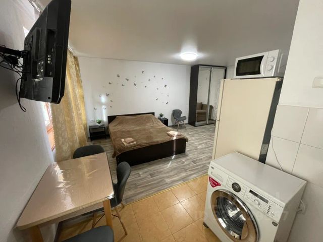 Сдам студию со всеми удобствами для комфортного проживания. В шаговой доступности рынок, магазины, аптеки, сквер, остановки общественного транспорта. В квартире имеется двуспальная кровать, диван, телевизор, стиральная машинка, микроволновая печь, холодильник, утюг, фен, бойлер, Wi-Fi, комплект полотенец на каждого гостя, постельное белье. Заезд у нас после 14:00 и выезд до 12:00. Возможно подстроить время под Вас. У нас не курят. Без животных. Фото соответствует! От 2-х суток.