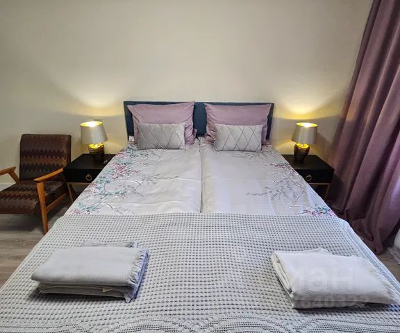 - Спальня 1 — кровать размером 1,6 х 2 м, с высоким и удобным анатомическим матрасом Seaqual от компании Askona, большой и вместительный шкаф, телевизор LG 55", прикроватные тумбочки, кресло, кондиционер.