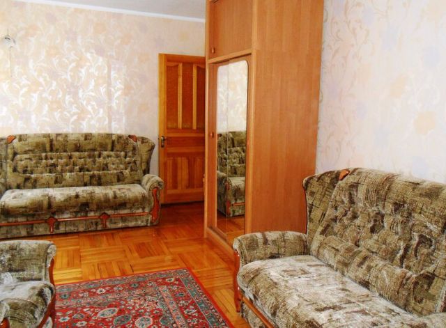 Однокомнатная квартира на первом этаже пятиэтажного дома. Горячая и холодная вода, кондиционер, интернет, спутниковое ТВ. В комнате одна двухспальная кровать, широкий раздвигающийся диван и одна односпальная кровать на балкончике. Шкаф для белья, журнальный столик. На кухне обеденный стол и кухонная мебель. Детская площадка во дворе, рядом рынок, магазины, амбулатория, аптека.