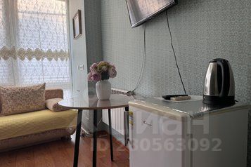 в кухне и гостиной зоне: откидная кровать со шкафа, кофемашина капсульная, микроволновка с духовкой, вся посуда, чайник , места для хранения, мини диван и телевизор, стол и стулья.