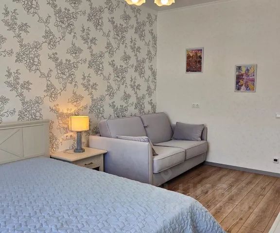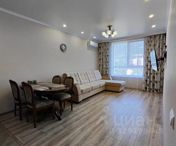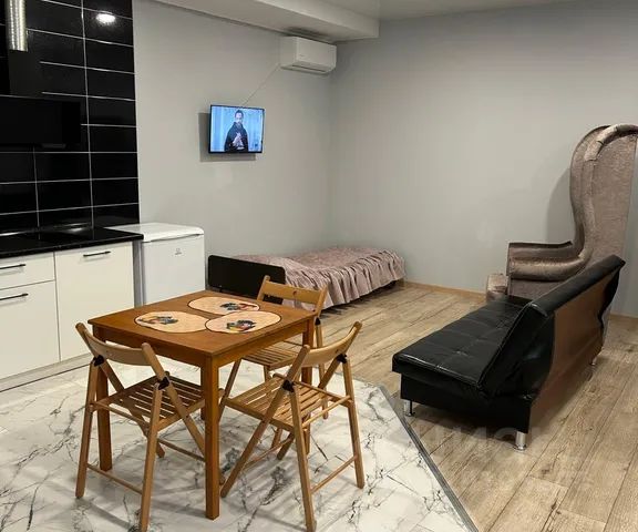- Мебель из шпона дерева производства Италии и России, мрамор, шторы блэкаут, картины крымских художников на стенах