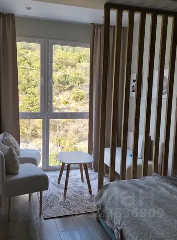 Жилье у моря! В одном из красивейших мест Симеиза! Чудесный вид на море, гору Ай-Петри и скалу Дива! До пляжа 10 минут неторопливым шагом через парк с кипарисами, пальмами и можжевельниками. Море, солнце, целебный воздух, уникальный микроклимат - все это Вы найдете здесь! Квартира-студия, пл.25 кв.м., находится на 3-м этаже нового дома у самого подножья живописной горы Кошка. Потрясающий вид на море! Панорамное остекленение. Рассчитана на 2-4 человек. Включает в себя кухню, шикарную 2-х спальную кровать с отличным матрацем, 2 кресла-кровати, вместительный шифоньер, санузел с душевой кабиной, стиральную машину, фен, ТВ и Wi-Fi, кондиционер, 2-х конфорочная э/плита, холодильник, микроволновая печь, э/чайник, посуда, постельное белье, утюг. Вся мебель и техника новые. Brand new! Недалеко от дома детская площадка, парк, несколько продуктовых магазинов, ресторанов и кафе. За горой Кошка аквапарк с морской водой. Строго для не курящих. Без домашних животных. Минимальный срок проживания - 5 дней. Время заезда после 14.00. Время выезда до 12.00. 2-х спальная кровать с отличным матрацем, 2 кресла-кровати, вместительный шифоньер. Продуктовые магазины, рестораны, кафе, детская площадка, парк, аквапарк с морской водой, аптека, автобусная остановка.