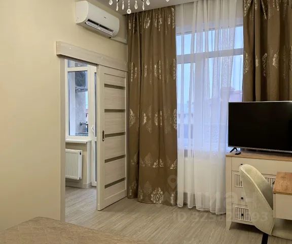 На территории гостевого дома находится отдельно стоящий двухэтажный дом. На втором этаже дома расположены одна однокомнатная квартира и одна двухкомнатная квартира. В однокомнатной квартире одна спальня, кухня, ванная комната и прихожая. В спальне находится кровать 1600х2000, две прикроватные тумбочки, небольшой раскладной односпальный диванчик, шкаф, комод, телевизор, кондиционер, коврики. Постельное бельё, полотенца на каждого гостя по два (одно 140х80 и одно 90х50), плед на каждого гостя. На окнах жалюзи.
