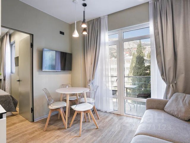 Отдельный вход, что удобно для пожилых и отдыхающих с детьми. Очень тихое и экологически чистое место. Гаспра утопает в зелени. Воздух наполнен можжевелово-сосновым целебным ароматом. Ощутила на себе, как за месяц пребывания полностью проходит аллергия, легче дышать. Внизу возле дома протекает горный ручей, шелест которого, как и пение цикад, способствуют полному Релаксу. Немаловажно, что квартира удалена от шумной трассы и можно слушать только звуки природы. В межсезонье отличная рыбалка, пешие прогулки по заповедным местам. Круглогодично в двух близлежащих санаториях работают крытые бассейны, для посещения которых можно купить абонемент. Квартира отделана кипарисом и можжевельником, что наполняет воздух внутри помещения оздоравливающим ароматом. Полностью укомплектована всем необходимым для проживания. Холодильник, телевизор, кондиционер, стиральная машинка, бойлер, электроплита. Интернет. Бесплатный Wi-Fi . Вода без перебоев. Комплекты постельного белья, полотенца, одеяла и подушки, посуда. Второй комнатой служит большая веранда с панорамным безрамным остеклением с прекрасным видом. Всего 5 спальных мест (двуспальная кровать, раскладной диван на веранде и удобное раскладное кресло). Ближайший магазин в 5 мин.ходьбы, ещё 5 минут до продуктового рынка и центра "Марат", где располагаются бары, кафе, рестораны, парикмахерская, супер-маркет, магазины. До моря пешком 10-15 мин.спокойным шагом, через парки санаториев "Родина", Днепр, либо через центр "Марат. Есть канатная дорога к морю и лифты на территории санаториев. В 10 минутах ходьбы вход в Ялтинский лесной заповедник и выход на Солнечную тропу, которую ещё называют Царской, ведущую к Ливадийскому дворцу, с которой открываются незабываемые панорамные виды на море и горы. Недалеко расположены: канатная дорога на гору Ай-Петри, Воронцовский, Юсуповский дворцы, в 15 минутах ходьбы замок-музей "Ласточкино гнездо". В объявлении указана МИНИМАЛЬНАЯ ЦЕНА!!! По всем вопросам СНАЧАЛА ПИШИТЕ, а после созвонимся, всем отвечу.