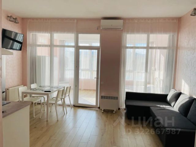 - Мебель из шпона дерева производства Италии и России, мрамор, шторы блэкаут, картины крымских художников на стенах