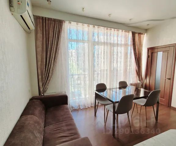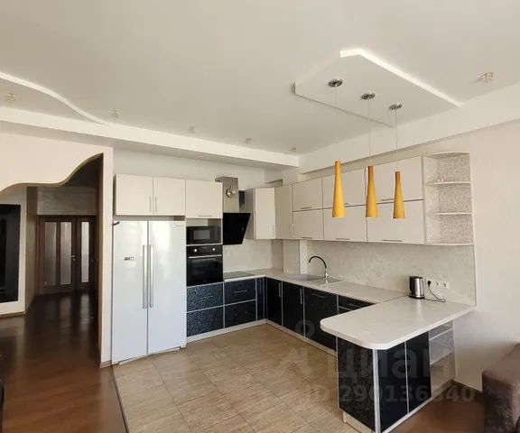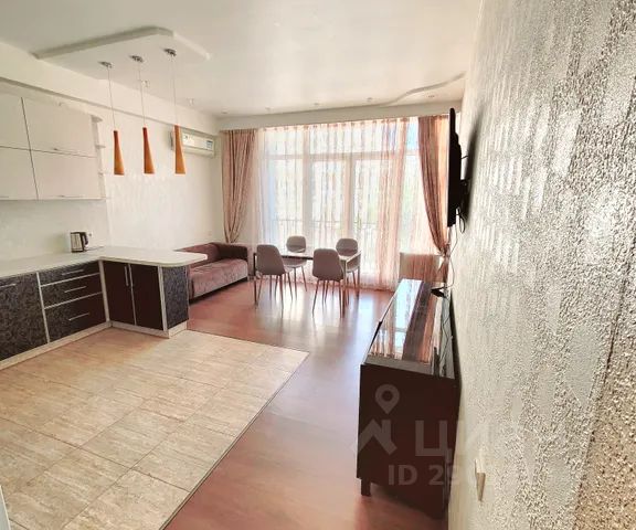 - Кухня-гостиная — кухонный гарнитур (варочная панель, духовка, вытяжка, посудомоечная машина, микроволновая печь, 2-х камерный холодильник, электрочайник, тостер, кофеварка, столовые приборы, посуда для приготовления и сервировки). Диван-кровать 2-х спальный, телевизор LG 55", TV-тумба, обеденный стол со стульями, кондиционер.