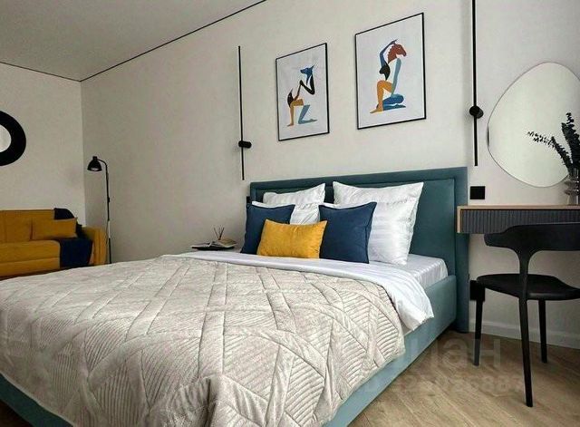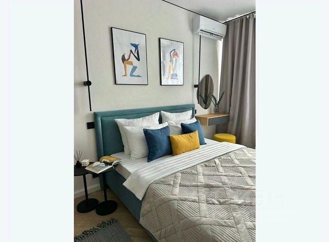 - Спальня 1 — кровать размером 1,6 х 2 м, с высоким и удобным анатомическим матрасом Seaqual от компании Askona, большой и вместительный шкаф, телевизор LG 55", прикроватные тумбочки, кресло, кондиционер.