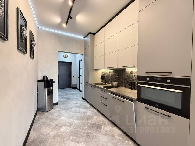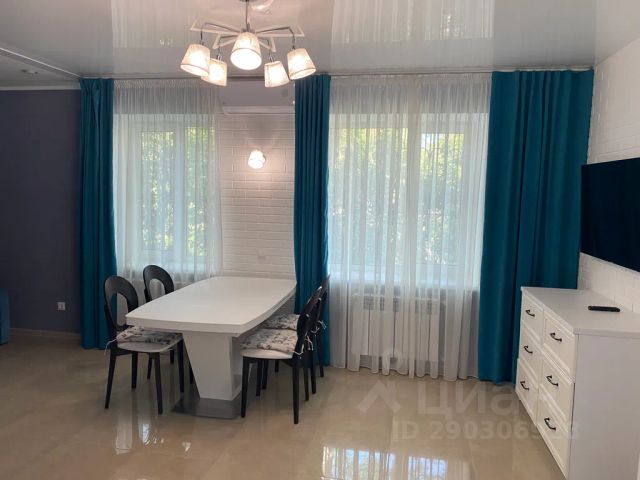 Кухня-столовая (19,8 м2) укомплектована посудой, фраже и др.мелочами, миксер (предоставляется по запросу), моющие ср-во д/посуды, тряпочки, губка, мешки для мусора, холодильник, газовая поверхность, электрочайник, микроволновая печь, миксер, большое зеркало, телевизор-плазма (размещен на стене).